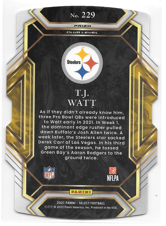 TJ Watt (Pittsburgh Steelers) Club Level Die Cut Green Yellow Panini Select Football 2021