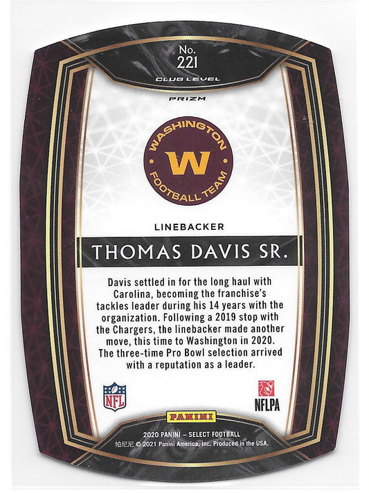 Thomas Davis Sr (Washington Commanders) Club Level Die Cut Orange Panini Select Football 2020