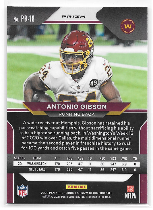Antonio Gibson (Washington Commanders) Prizm Black Silver RC Panini Chronicles Football 2020