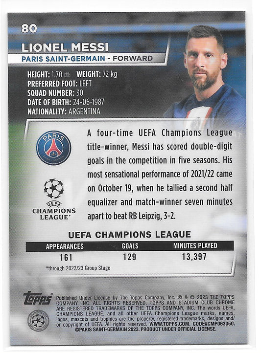Lionel Messi (PSG) Championship Contributions Topps Stadium Club Chrome 22-23