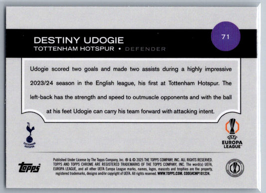 Destiny Udogie (Tottenham Hotspur) Wave Refractor Topps Chrome UCC 24-25