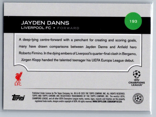 Jayden Danns (Liverpool FC) Wave Refractor RC Topps Chrome UCC 24-25