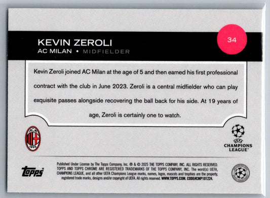 Kevin Zeroli (AC Milan) Green Prism Refractor /99 RC Topps Chrome UCC 24-25