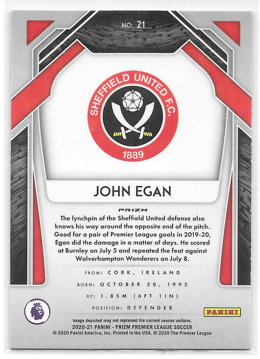 John Egan (Sheffield United) Blue Pulsar Panini Prizm Premier League 20-21