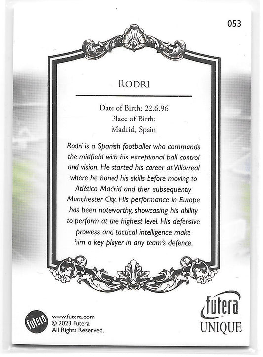 Rodri (Spain) Base Futera Unique World Football 23-24