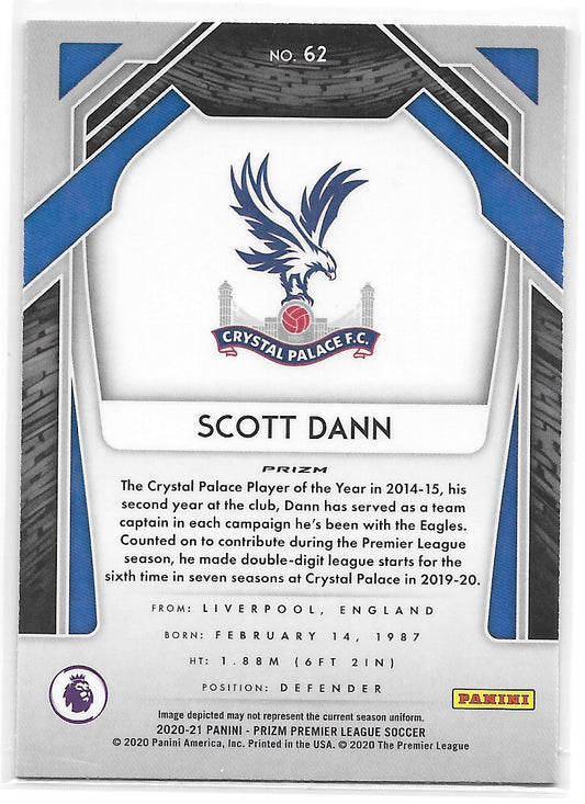 Scott Dann (Crystal Palace) Blue Pulsar Panini Prizm Premier League 20-21