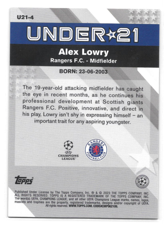 Alex Lowry (Rangers FC) Under 21 Stars Topps Merlin Chrome UCC 22-23