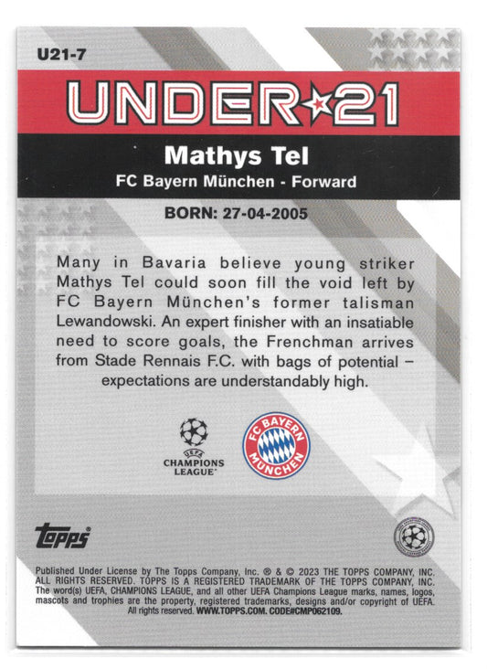Mathys Tel (FC Bayern Munchen) Under 21 Stars Topps Merlin Chrome UCC 22-23