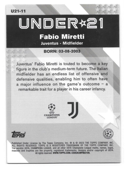 Fabio Miretti (Juventus) Under 21 Stars Topps Merlin Chrome UCC 22-23