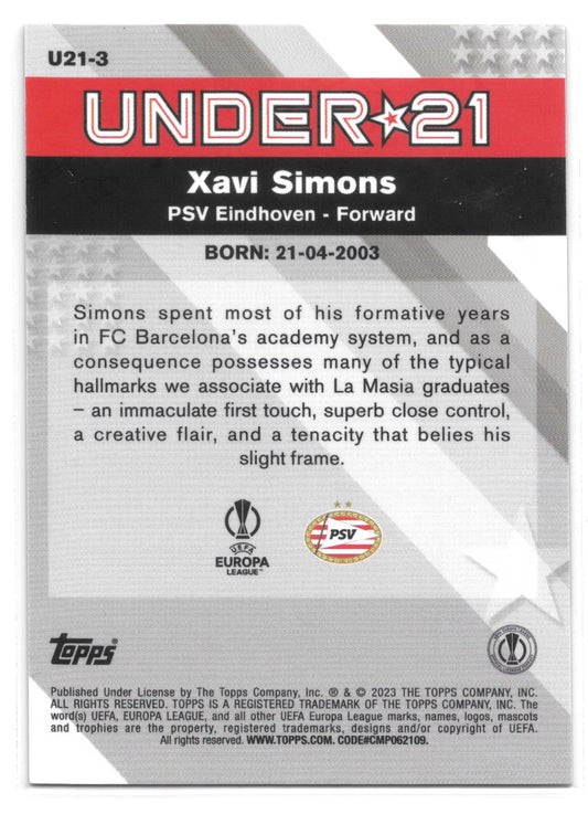 Xavi Simons (PSV Eindhoven) Under 21 Stars Topps Merlin Chrome UCC 22-23