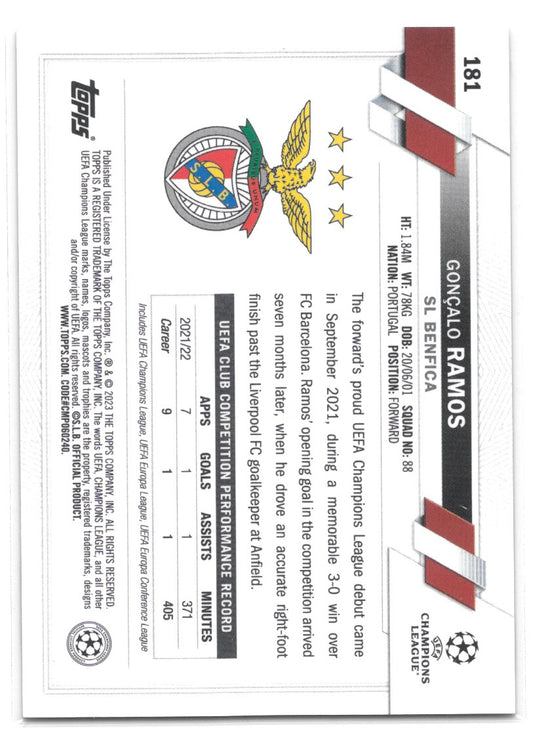 Gonçalo Ramos (SL Benfica) Hero Variation Topps UEFA Club Competitions Chrome 22-23