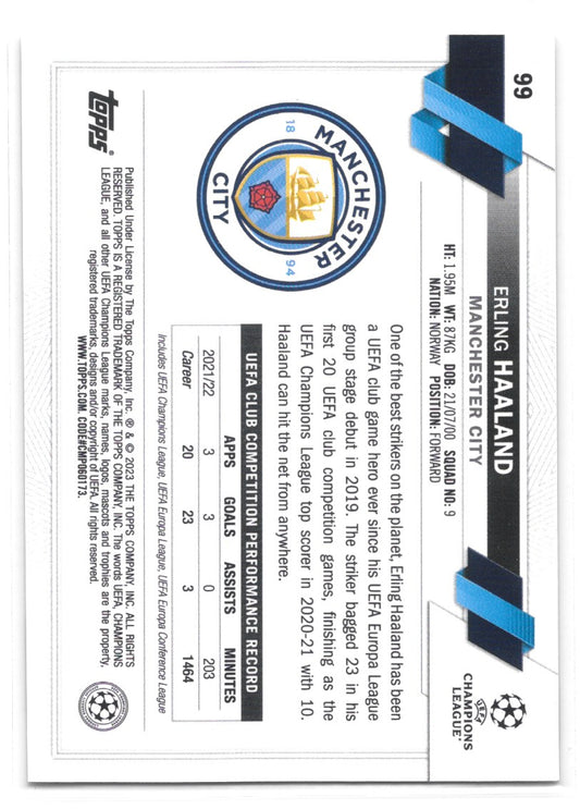 Erling Haaland (Manchester City) Pulsar Refractor Topps UEFA Club Competitions Chrome 22-23