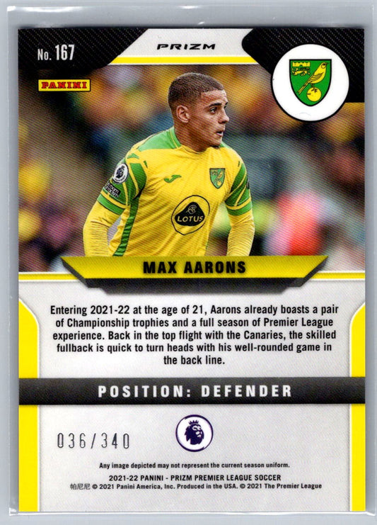 Max Aarons (Norwich City) Blue Prizm /340 Panini Prizm Premier League 21-22