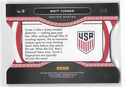 Matt Turner (USA) Contra Electric Etch 1/9 Jersey Match Panini Obsidian Soccer 23-24