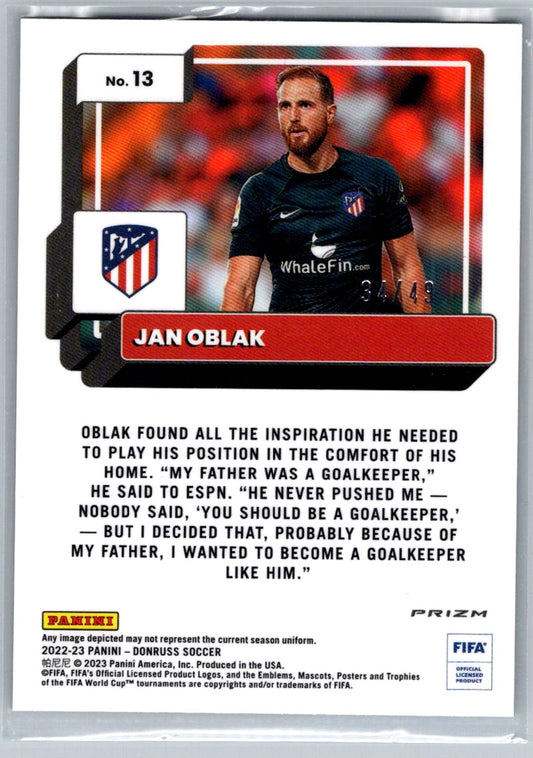 Jan Oblak (Atletico de Madrid) Optic Teal Mojo /49 Panini Donruss FIFA Soccer 22-23