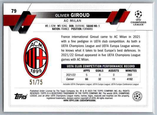 Olivier Giroud (AC Milan) Samba Green /75 Topps Carnaval UCC 22-23