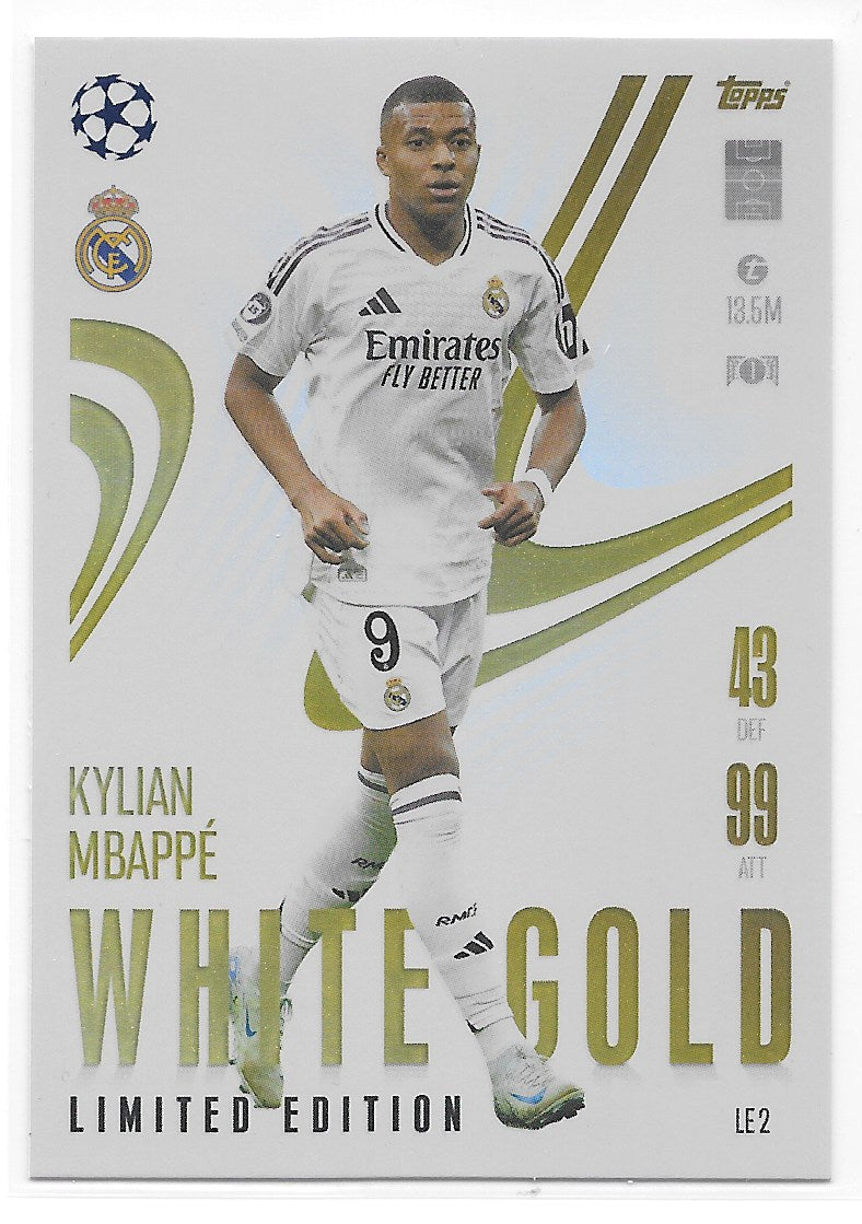 Kylian Mbappe (Real Madrid CF) White Gold Limited Edition Topps Match Attax Extra 24-25